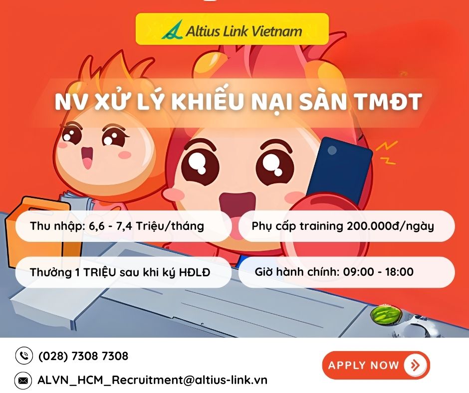 [TUYỂN DỤNG] NHÂN VIÊN XỬ LÝ KHIẾU NẠI SÀN TMĐT (GIỜ HÀNH CHÍNH, KHÔNG SALES)